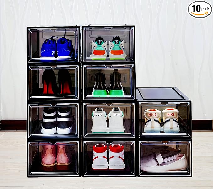 - [ASSEMBLY EASY & FAST] Stackable, sturdy and stable without displacement. [Qty.] 10 Pieces. [WARRANTY] JECCICHY plastic shoe box, from raw materials, design, production to factory inspection, every process is strictly controlled,to ensure that high-quality sneaker boxes are provided to our customers.