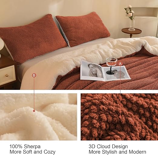 • Distinctive Features: The comforter has elegant and luxurious 3D jacquard pattern on the front and thick soft Sherpa Fleece on the back, which is both beautiful and warm.