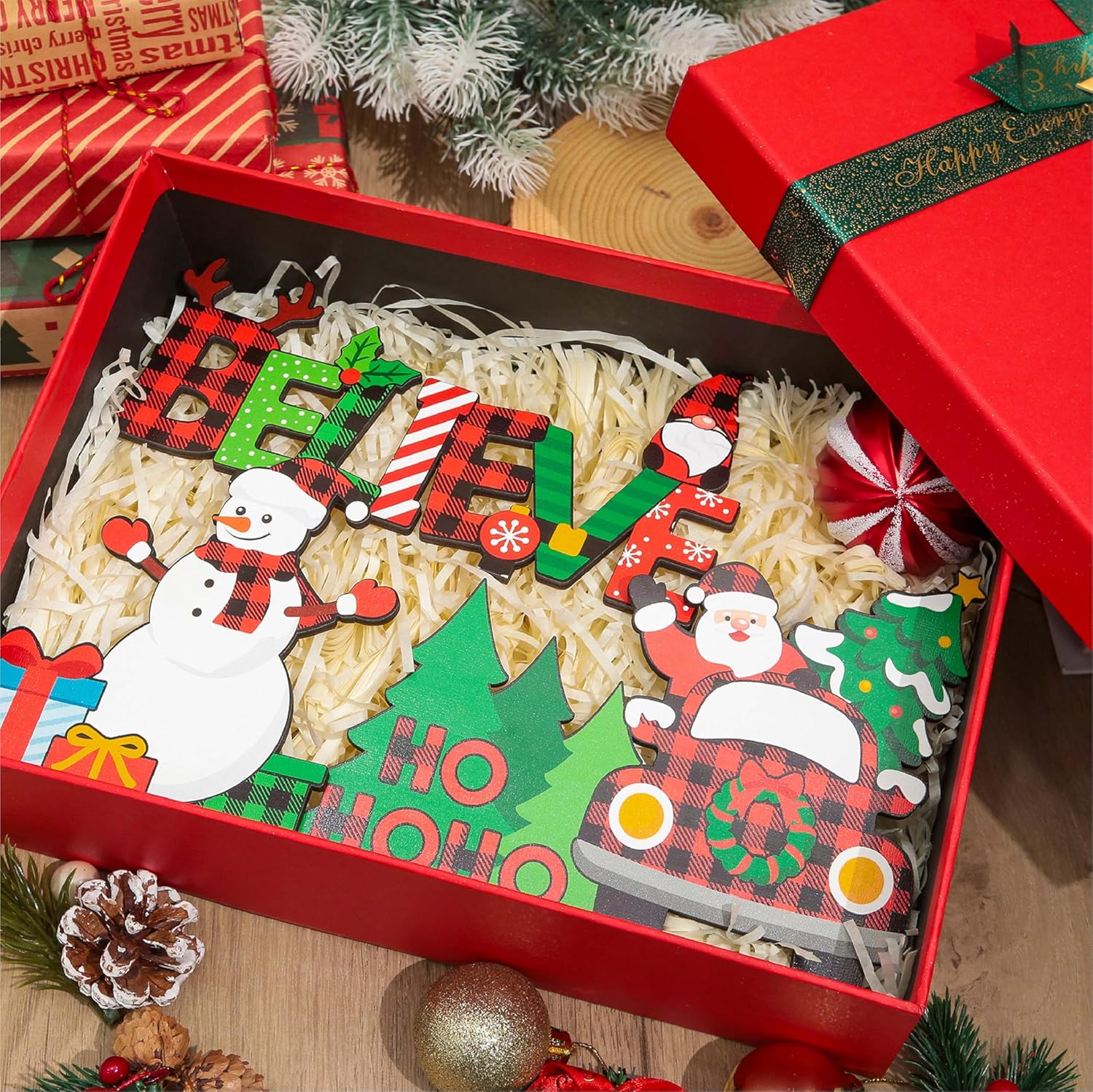 Festive & Heartwarming Designs: Includes Santa driving with gifts, a smiling snowman, a playful gnome, plus classic holiday lettering like Believe, Joy and Merry Christmas to brighten your holiday décor