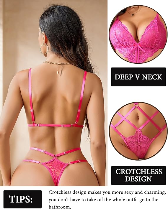 【Design】Teddy lingerie feature deep v neck and cut-out design,The special cut-out waist of women lingerie is tightly designed to highlight your gorgeous curves. Adjustable straps and backless design make this teddy bodysuit suitable for all sizes.