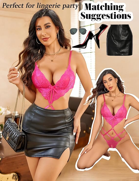 Avidlove Women Lingeries Deep V Teddy Lingerie Sexy Lace Bodysuit Cut Out One Piece Mini Babydoll
