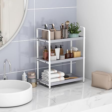 Space Saving Bathroom Organizer:Bathroom counter organizer It can make everything in your bathroom look organized,bathroom countertop organizer can store toothbrushes,shower gel,laundry detergent,bath balls and other daily necessities in the bathroom.