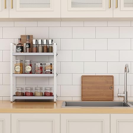 Sturdy And Durable Construction: Crafted from solid wood and iron frames with an anti-rust paint finish, this organizer boasts a robust and long-lasting design complemented by anti-slip pads for added stability in damp environments.