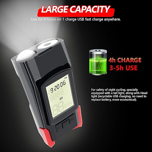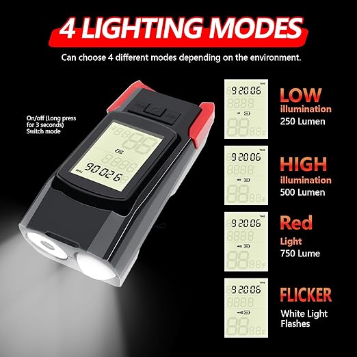 - Smart Display with Ride Tracking : The large LCD screen displays real-time battery life, speed, distance, and ride duration – giving you complete control. This innovative bicycle light front combines the functionality of a bike speedometer and headlight for bike in one sleek unit. Perfect for tracking your night rider bike lights performance