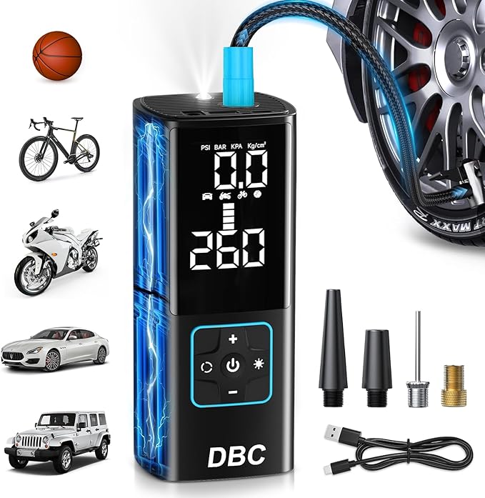 - VERSATILE EMERGENCY TOOL: Cordless and lightweight design makes it suitable for a wide range of applications like home use, car breakdown, SOS light, night light, road trips,and more. The air compressor is equipped with USB-C and USB input/output ports, providing backup power for your phones and other electronic devices.
