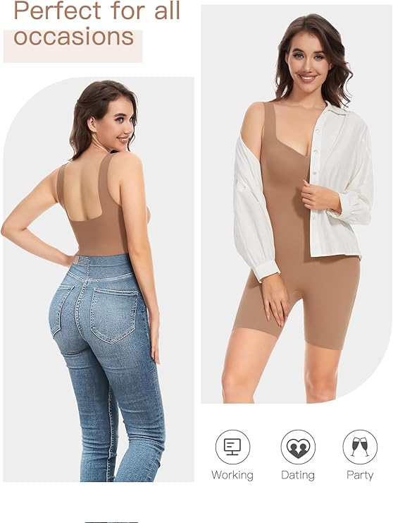 - FEATURES: The Unitard jumpsuits for women has removable built-in bra pads, allowing you to choose whether to wear a bra or not, wider straps and chest V-neck design of the body suits for womens can not only show your beautiful shoulder and neck lines, but also to ensure the comfort of wearing, seamless stitching to make your body look more curvy, to create an hourglass figure