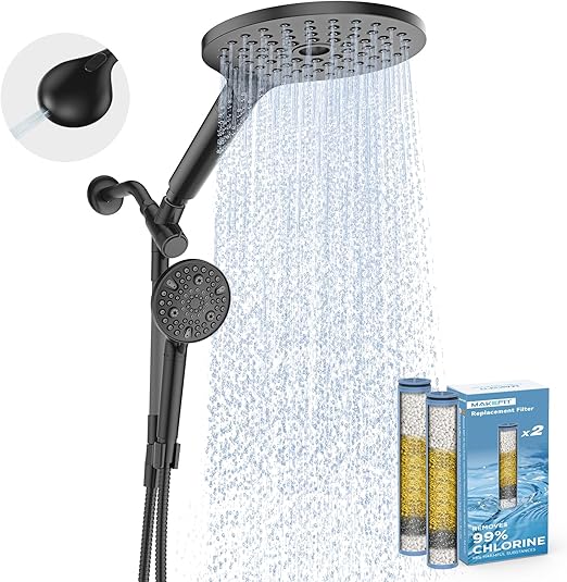 • Dual Filtered Handheld Shower Head: Are you experiencing dry skin, weak hair, or unpleasant odors coming from your showerhead due to hard water? MakeFit newest designed dual filtered handheld shower head features a powerful filtration system, equipped with advanced KDF55, calcium sulfite, vitamin C, ceramic balls, and more, effectively remove chlorine, fluoride, heavy metals, and other harmful substances commonly found in tap water, improving the overall health and appearance of your skin and hair in both hot and cold water