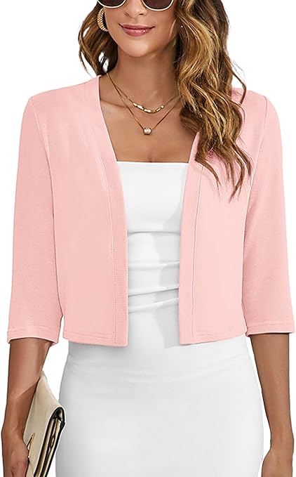 Heymoments Women’s Thin Shrugs 3/4 Sleeve Lightweight Cropped Tops Open Front Cardigan for Dress
