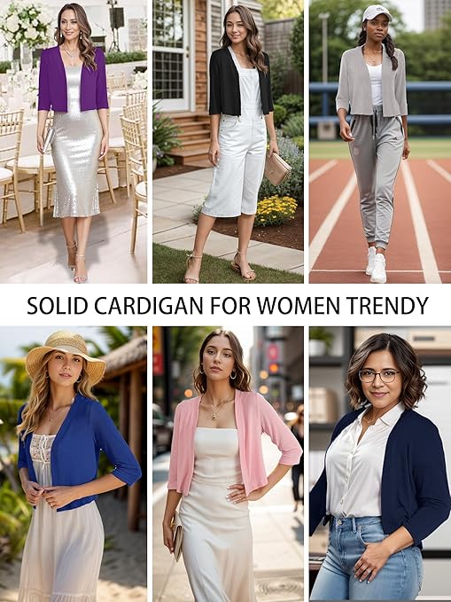 • Features: Casual style, slim fit design, solid color, Open Front, ultra soft material, the 3/4 sleeves women Thin Shrugs are so comfy and flattering on all body types. You will love it and get lots of compliments on both.