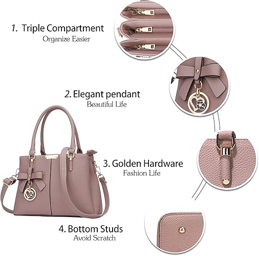 KKXIU 3 Zippered Compartments Purses and Handbags for Women Top Handle Satchel Shoulder Ladies Bags