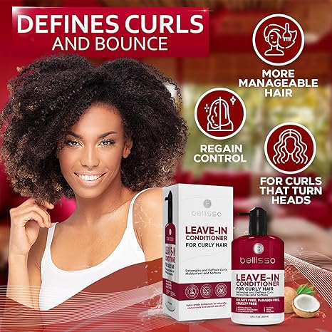 - NOURISHMENT FOR CURLY HAIR: Designed specifically for curls, Bellisso’s leave in conditioner for curly hair delivers deep hydration to keep strands soft and defined. Its rich formula replenishes moisture, making it a must have for frizz control hair care products. If you’re in search of a conditioner curly hair will love, this formula helps restore bounce and shine.
