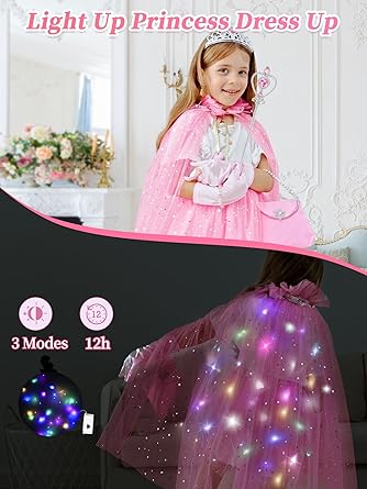 -13% limeted time deal;-Light Up Princess Dress Up for Girls 3 4 5 6 Years Old, Toddler Dress Up Clothes, Princess Toy Gift for Birthday