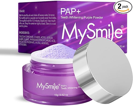 MySmile Pap Natural Mint Non-Sensitive Teeth Whitening Powder Cavity Prevention Little Foam for Cleaning Tooth Fresh Breath Care Oral Alternative Fluoride Free Toothpaste -1.04 oz (Bright Purple)