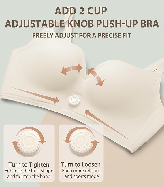 - Adjustable Knob System: Wireless push-up bra With Rotating Buckle and adjustable straps gives you a Micro-adjustable precise fit, twisting the button not only fine-tunes the band to your suitable length (0-2.5cm) but also enhances lift up, this time it’s not you adapting to your bra, it’s your bra adapting to you
