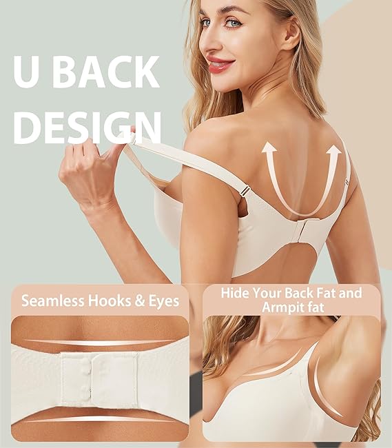 - Deep V-Neck Design: The unique elegant low cut bra design adds volume and definition to the bust, giving you the confidence boost you need; Whether wearing a form-fitting dress or a casual T-shirt, this bra provides the perfect amount of lift, enhancing silhouette effortlessly