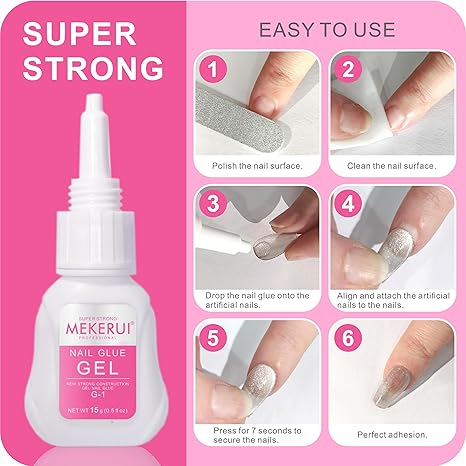 ★ SUPER STRONG :G-1 nail glue gel design, anti dripping, anti blocking, can solve the problem of uneven nails, make it easy to apply,create glamnetic press on nails,It’s not builder nail gel