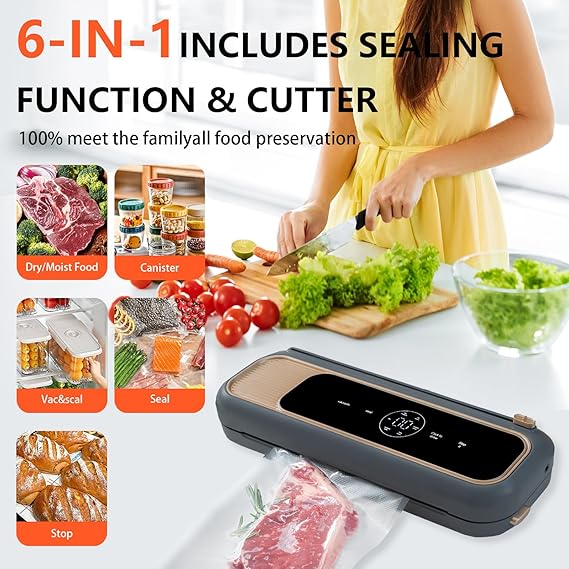 Effortless One-Touch Automation: Maximize convenience with our food saver vacuum sealer machine One-TouchAutomatic Mode, This feature ensures a lightning-fast, hands-free sealing process-ideal for busy households. Reduce food waste, so you can say goodbye to wasting time and extend food freshness
