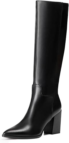 • ✨Easy to Wear: Pointed toe high boots feature a soft faux leather upper and a full-length side zipper closure for a comfortable fit. The soft, breathable lining and non-slip rubber outsole provide a superior wearing experience.