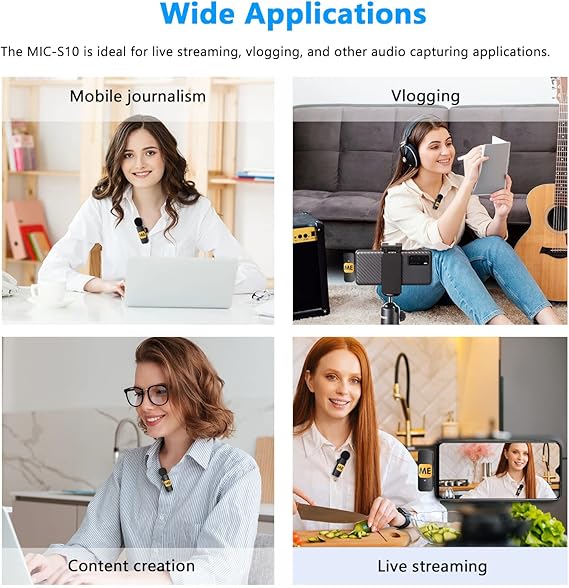 • Wireless Microphone for Android Phone : The ME MIC-S10 microphone with USB-C connector is compatible with android Phone USB-C devices. Ideal for video recording, interviews, online meetings, podcasts, vlogging, live streaming