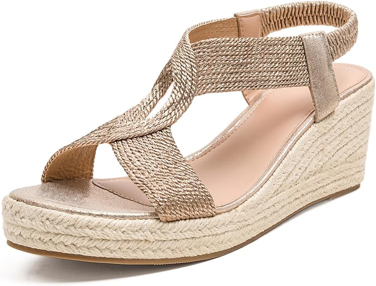 COMFORTABLE MATERIAL: 3.0 Inch wedges of our wedges for women provides full support Breathable durable canvas, hand-woven wedge heels. Soft lining with natural rubber non-slip sole, comfortable and environmentally friendly.